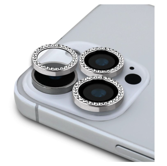 Guess Fixed Glliter Ochrana Čoček pro iPhone 16 Pro/16 Pro Max Silver