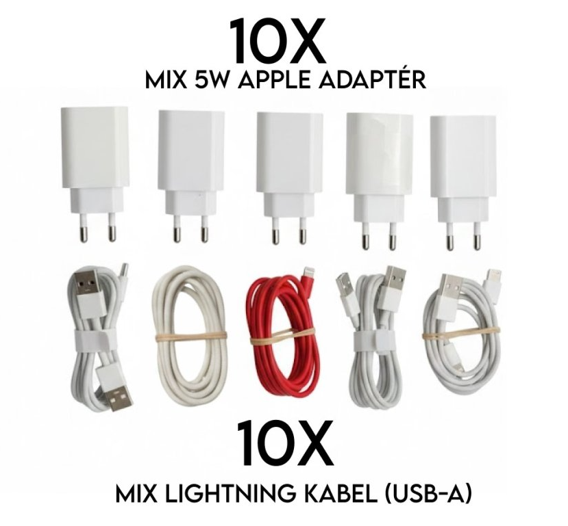- Balení: 10× Apple adaptér + 10× Lightning kabel