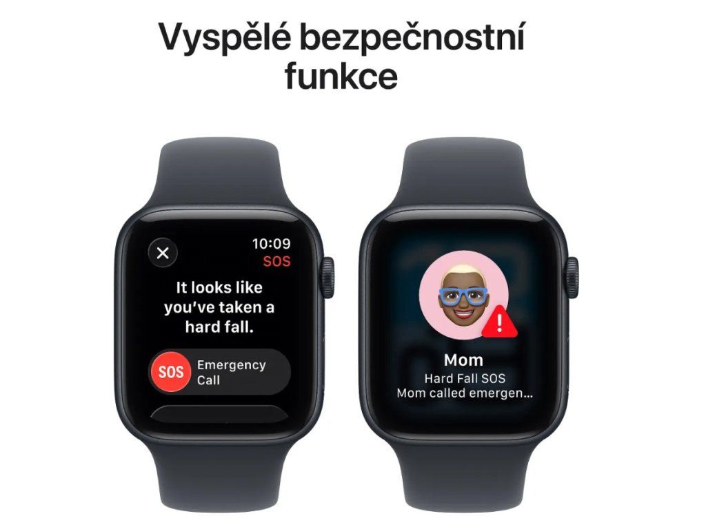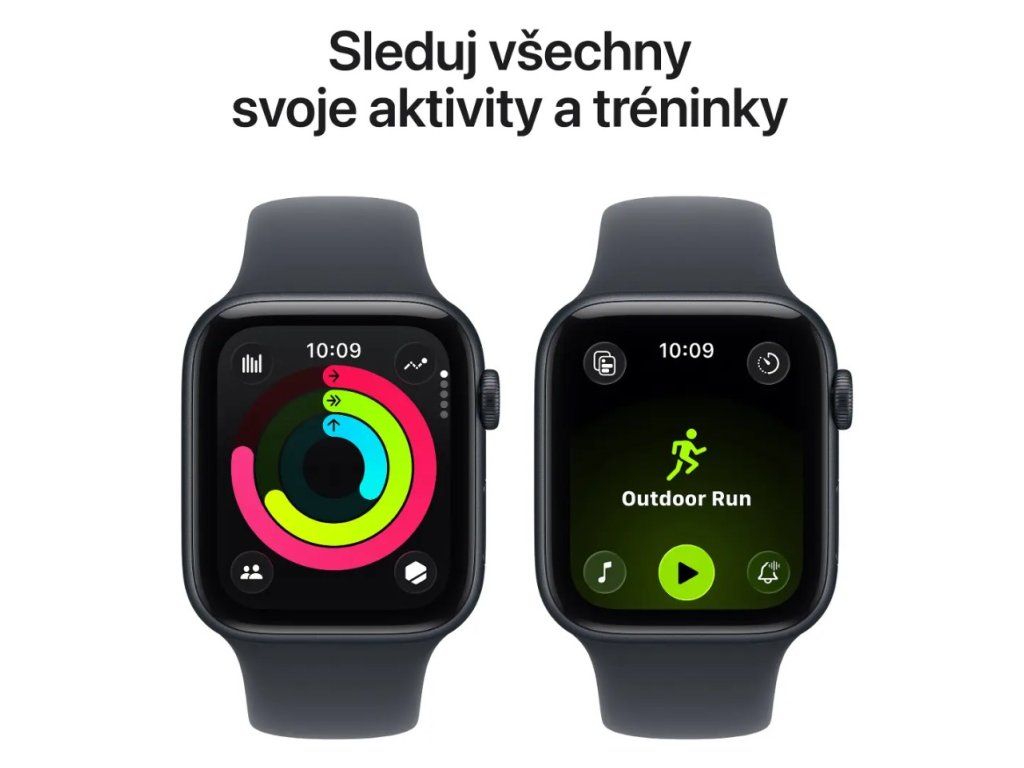 Stylové chytré hodinky pro každý den. Apple Watch SE v 44mm provedení kombinují moderní design, intuitivní ovládání a praktické funkce, které usnadňují každodenní život. Hliníkové pouzdro v barvě Midnight doplňuje sportovní řemínek pro pohodlné nošení.