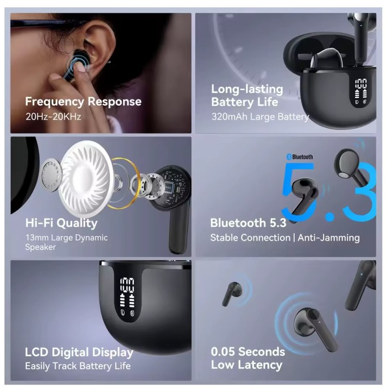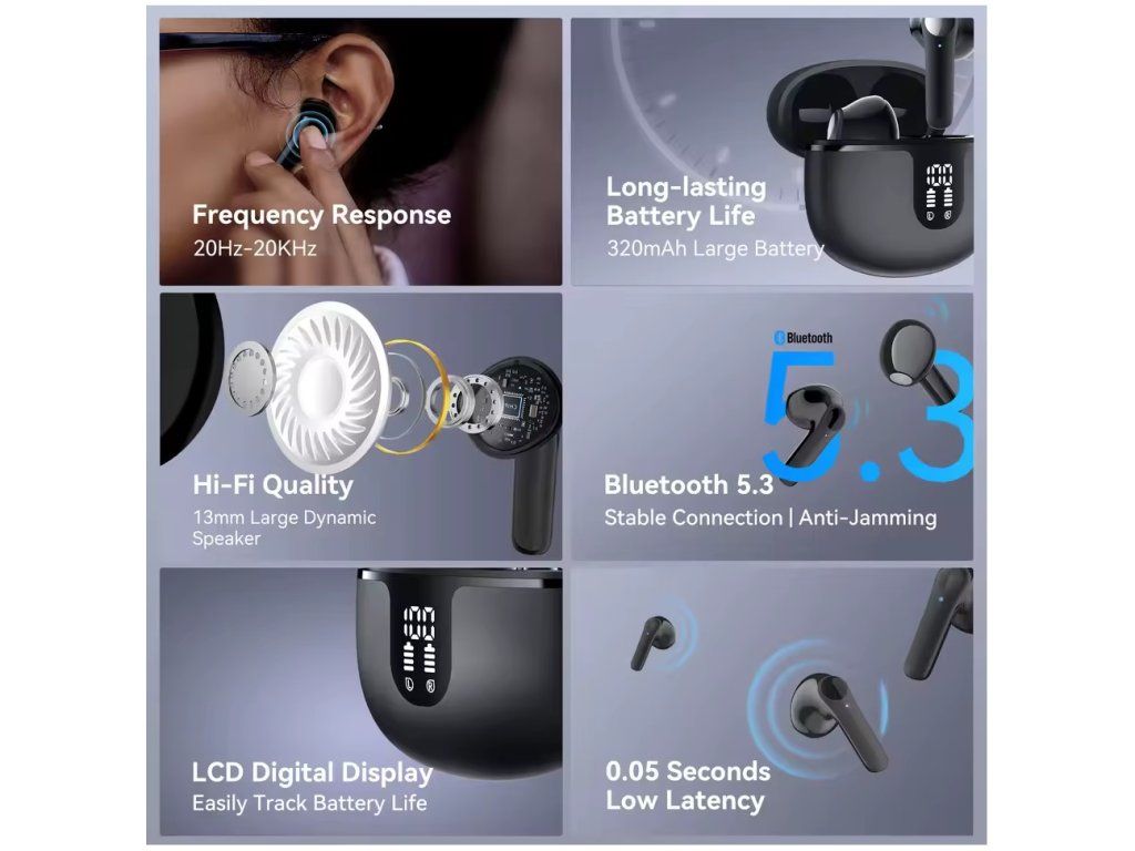 Díky lehké konstrukci a praktickému pouzdru jsou sluchátka ideální pro každodenní použití doma, v práci i na cestách. Jednoduché ovládání a spolehlivý chod z nich dělají vhodnou volbu pro každého, kdo hledá dostupná a funkční bezdrátová sluchátka bez složitých funkcí navíc.