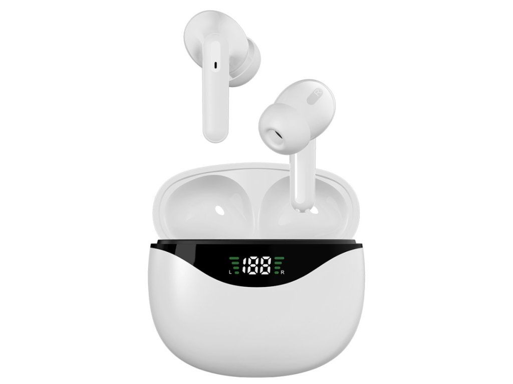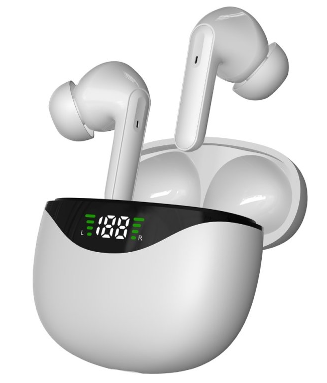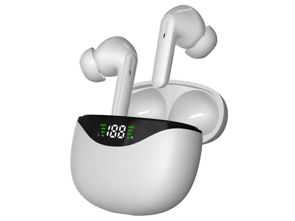 Bezdrátová TWS sluchátka CS-121 s nabíjecím pouzdrem – bílá