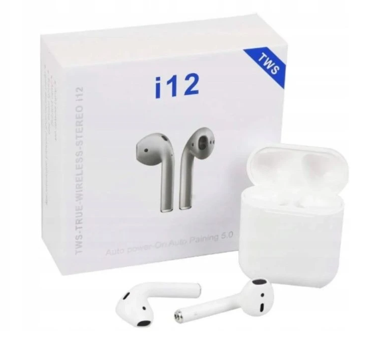 Bezdrátová TWS sluchátka i12 – bílá