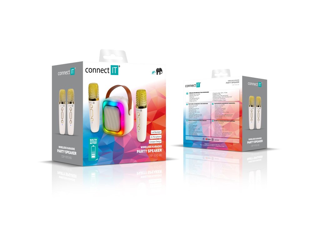 CONNECT IT 2Mic Karaoke Party (CSP-1010-BG) je kompaktní, ale překvapivě výkonný mini reproduktor, který promění jakýkoliv prostor v soukromou koncertní stage. Díky dvěma bezdrátovým mikrofonům v balení si můžete užít skutečné karaoke ve dvou – ať už doma, na oslavě, dětské party nebo spontánním večírku s přáteli. Stačí zapnout, připojit telefon a zábava může začít.