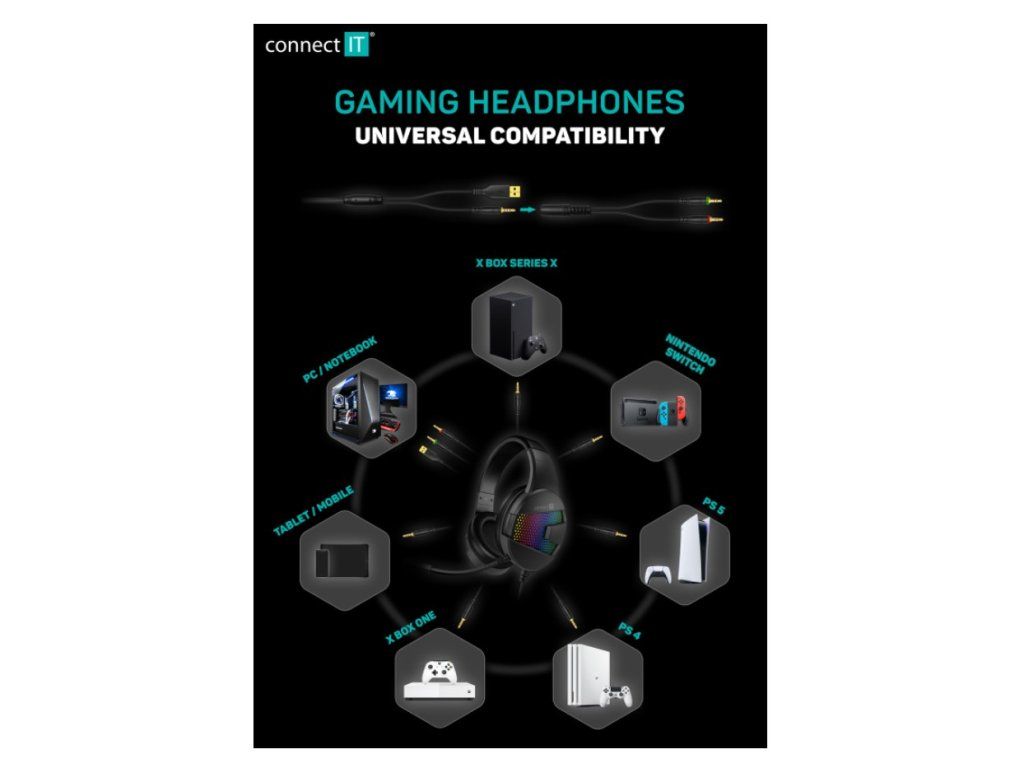 Profesionální gamingová sluchátka navržená pro hráče, kteří chtějí pohodlí, výrazný design a spolehlivý zvuk při každé hře. Connect IT BATTLE RGB SERIES Edition 3 kombinují herní vzhled s praktickými funkcemi pro každodenní hraní doma i intenzivnější použití u počítače. Díky RGB podsvícení obou mušlí, pohodlné konstrukci a univerzální kompatibilitě jde o headset, který dobře zapadne do moderního herního setupu a současně nabídne vše důležité pro komunikaci i samotný herní zážitek.
