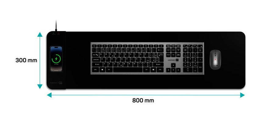 Connect IT CHARGE nabíjecí podložka pod klávesnici a myš, vel. L (800 × 300 mm) – černá
