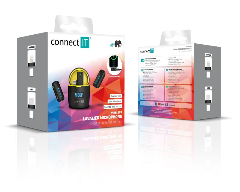 Kompletní bezdrátový mikrofonní set Connect IT ideální pro mobilní natáčení, podcasty a tvorbu online obsahu.