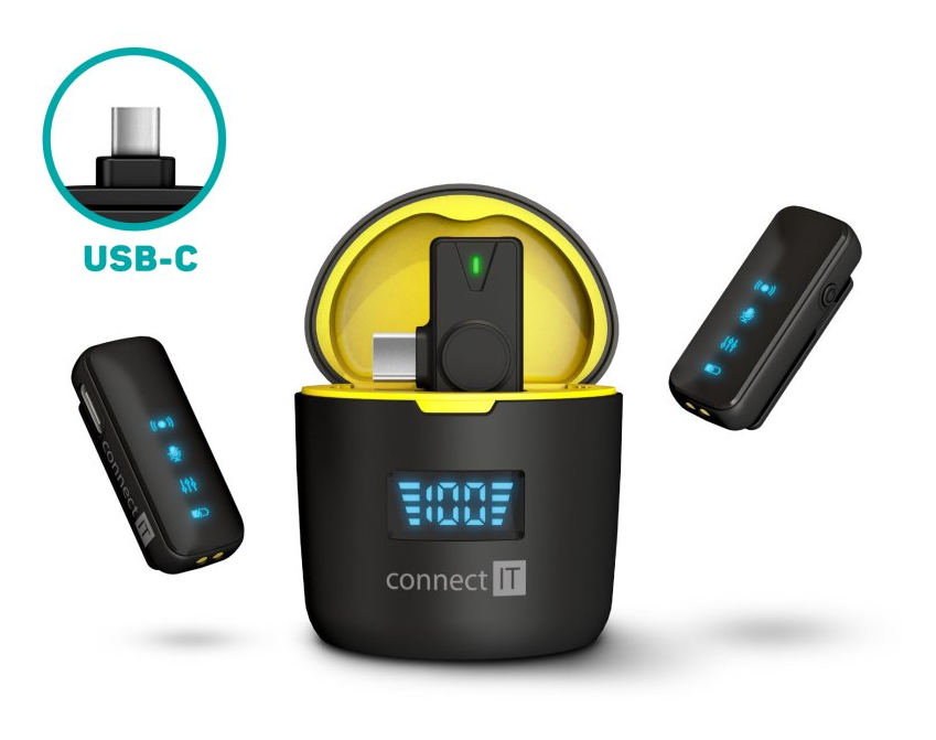 Connect IT ClipMic Pro bezdrátový mikrofon USB-C (2 ks + receiver)