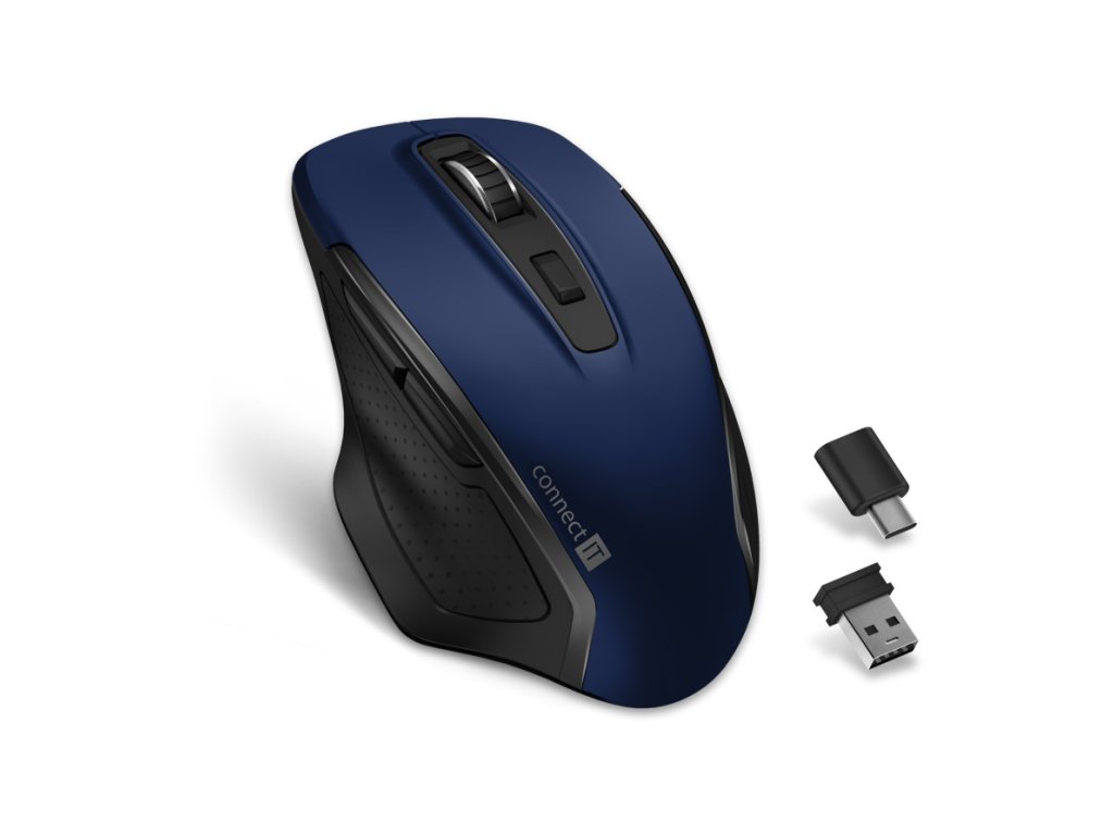 Connect IT Dual SmartSwitch bezdrátová myš, USB-A + C (+ baterie) – modrá