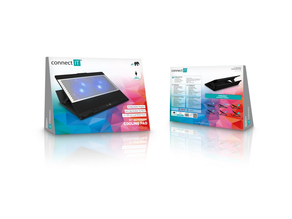Connect IT FrostBlast je chladicí podložka navržená pro efektivní snížení teploty notebooků do velikosti 15,6". Kombinuje aktivní chlazení pomocí dvou velkých ventilátorů, hliníkovou chladicí mřížku a promyšlenou konstrukci, která podporuje přirozený odvod tepla z pláště notebooku i jeho ventilačních otvorů. Výsledkem je stabilnější chod zařízení a komfortnější práce i při vyšší zátěži.