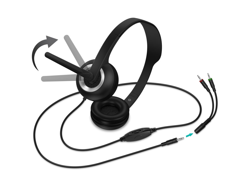 Vysoce citlivý mikrofon je umístěn na sklopném ramenu, které lze snadno nastavit podle potřeby nebo zcela odklopit, když mikrofon právě nepoužíváte. Ovládání hlasitosti je prakticky umístěno přímo na kabelu, takže máte regulaci zvuku vždy okamžitě po ruce.