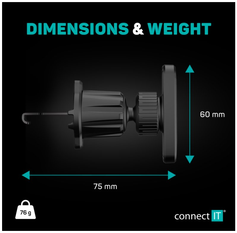 Connect IT InCarz 6Strong360 je praktický a mimořádně stabilní magnetický držák mobilního telefonu určený pro uchycení do větrací mřížky automobilu. Je navržen tak, aby splňoval bezpečnostní požadavky na umístění telefonu v interiéru vozu a zároveň poskytoval maximální komfort při každodenním používání navigace, handsfree hovorů nebo hudebních aplikací. Díky šesti extra silným magnetům udrží telefon pevně na svém místě i při výrazných nerovnostech vozovky, prudkém brzdění nebo vyšších rychlostech, a to bez nepříjemných vibrací.