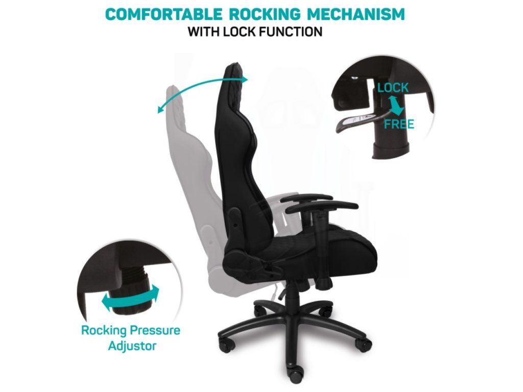 Křeslo je vybaveno ergonomicky tvarovaným sedákem i opěradlem, které podporují správné držení těla. Odnímatelná krční a bederní opěrka pomáhá odlehčit páteři a eliminovat nepohodlí při dlouhém sezení. Díky tomu je ideální nejen pro hraní, ale i pro práci z domova nebo kancelářské využití.
