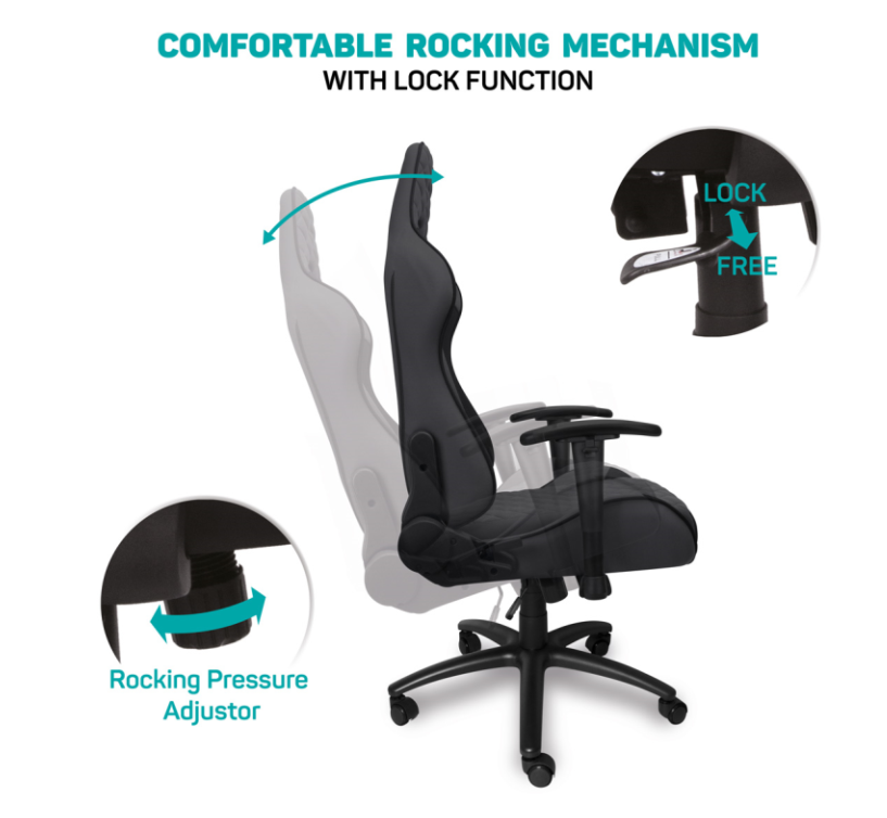 Křeslo je vybaveno ergonomicky tvarovaným sedákem i opěradlem, které podporují správné držení těla. Odnímatelná krční a bederní opěrka pomáhá odlehčit páteři a eliminovat nepohodlí při dlouhém sezení. Díky tomu je ideální nejen pro hraní, ale i pro práci z domova nebo kancelářské využití.