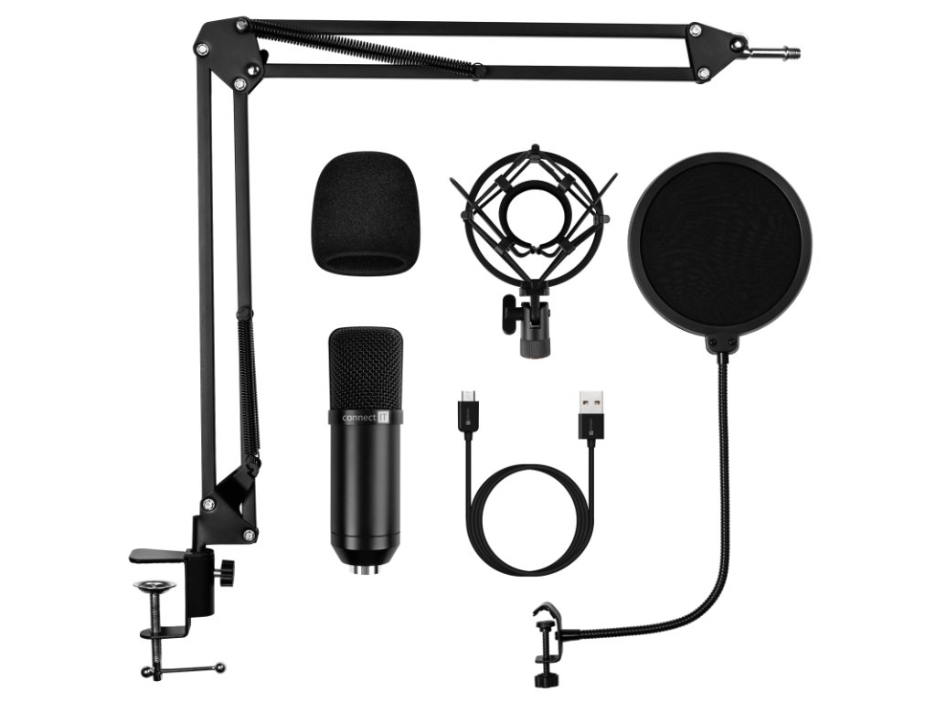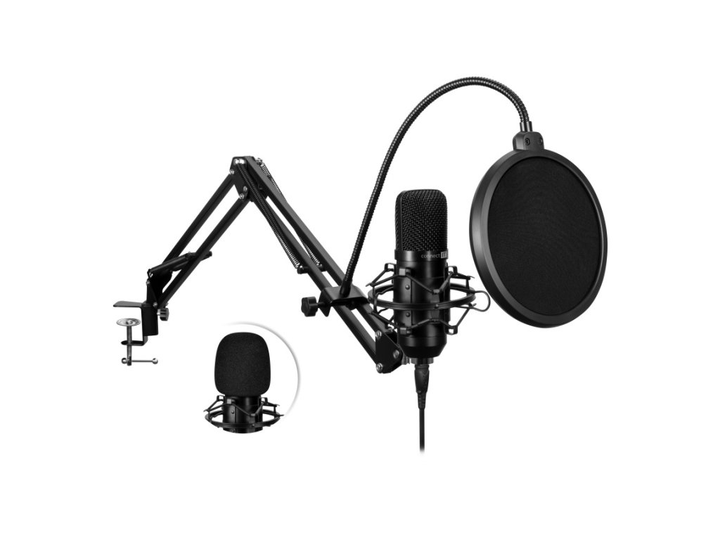 Connect IT ProMic USB Mikrofon se stolním ramenem – černá