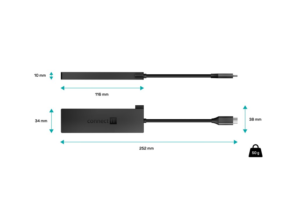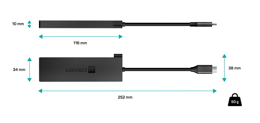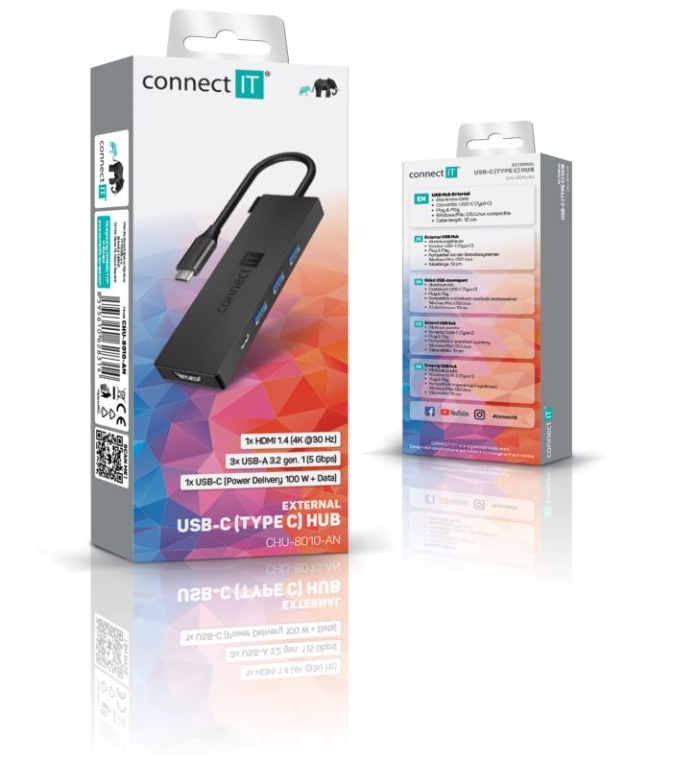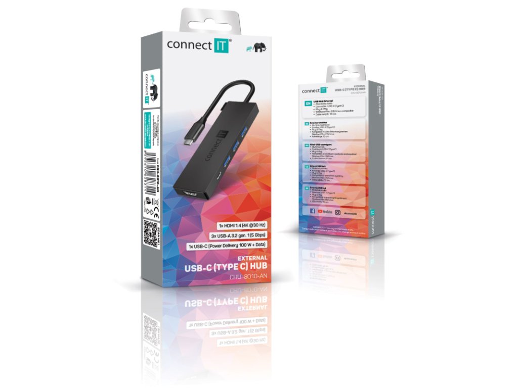 Connect IT Hub 5IN1 USB-C ANTHRACITE (CHU-8010-AN) je prakticky tvarovaný a kompaktní rozbočovač, který z jednoho USB-C portu vytvoří plnohodnotné pracovní centrum. Nabízí kombinaci USB-C s podporou 100 W Power Delivery, HDMI výstup a 3× USB-A 3.2 Gen 1, takže bez omezení připojíte monitor, napájení i běžné periferie současně.