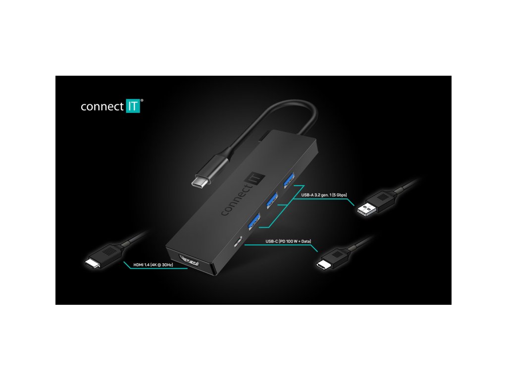 Connect IT USB-C hub 5v1 (USB-C, 3x USB-A, HDMI), externí - antracitová