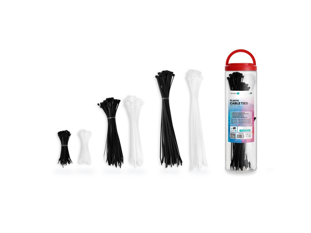 Connect IT ZipTie stahovací pásky na kabely, černá/bílá - 600 ks