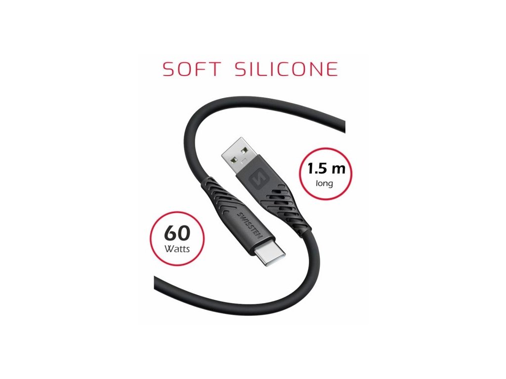 "Datový Kabel Swissten Soft Silicone USB-C / USB-C 1,5 M 60W Černý: Rychlé a Odolné Propojení Pro Vaše Zařízení"