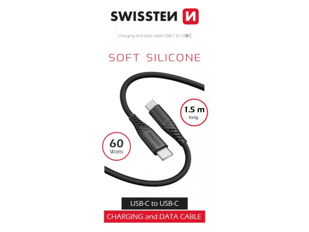 Datový Kabel Swissten Soft Silicone USB-C / USB-C 1,5 M 60W Černý