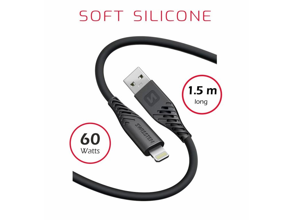 Datový Kabel Swissten Soft Silicone USB / Lightning 1,5 M 60W Černý