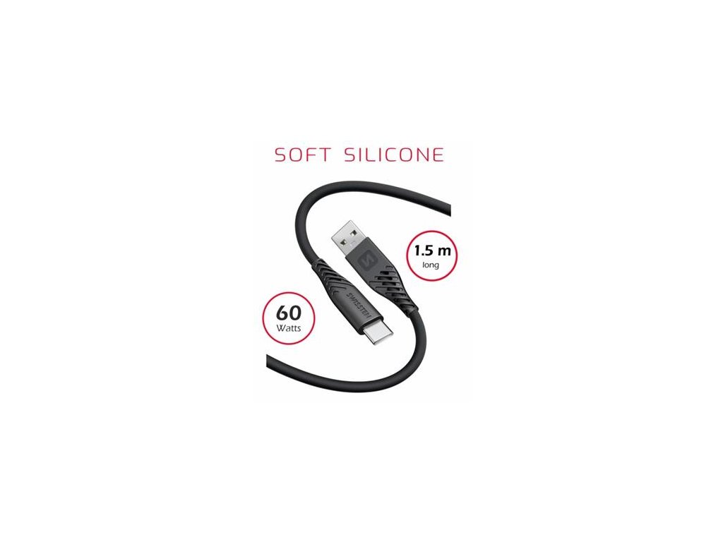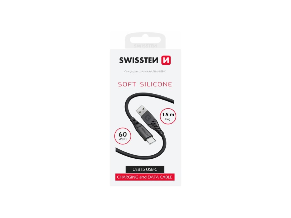 Datový Kabel Swissten Soft Silicone USB / USB-C 1,5 M 60W Černý