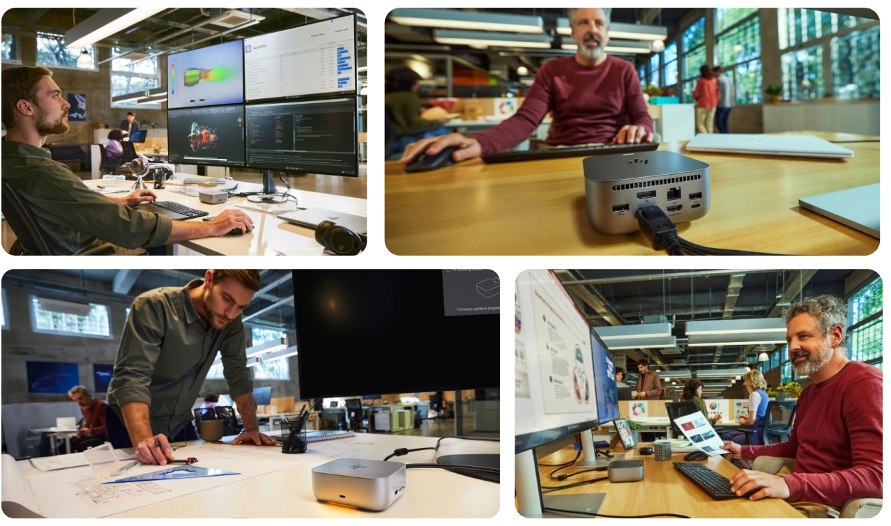 Stanice umožňuje připojení více externích monitorů současně a podporuje rozlišení až 8K při 30 Hz. K dispozici jsou 2× DisplayPort 1.4 a 1× HDMI 2.1, což poskytuje maximální flexibilitu při budování profesionální víceobrazovkové sestavy. Ideální řešení pro analytiky, vývojáře, grafiky i manažery, kteří potřebují pracovat s více aplikacemi současně a chtějí mít přehled bez neustálého přepínání oken.