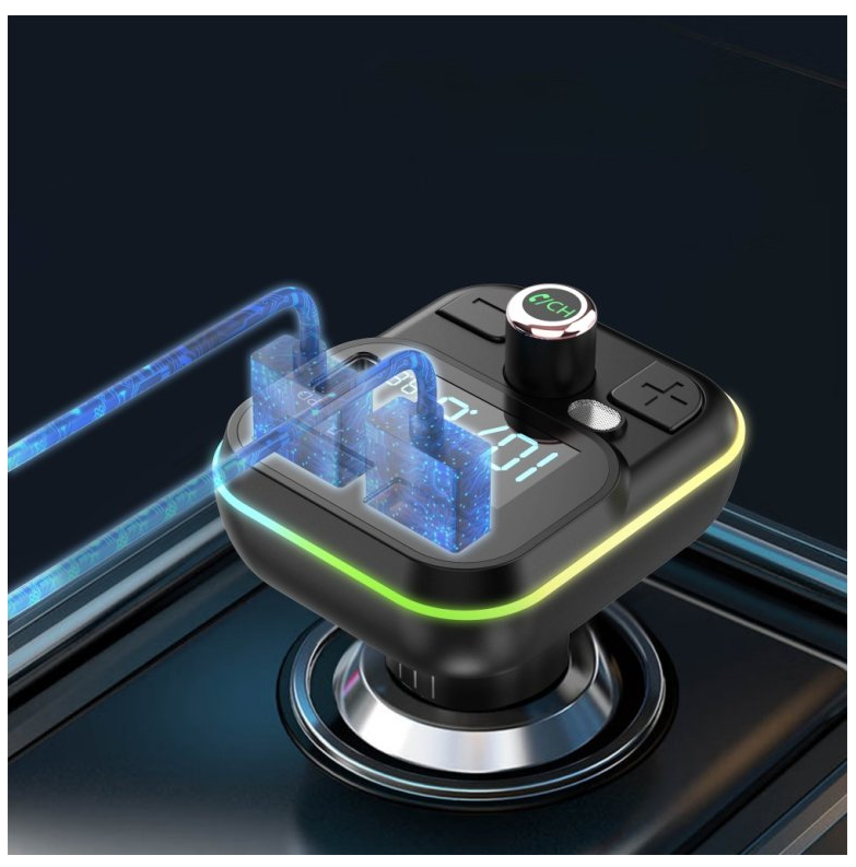 Transmitter nabízí dva výstupy pro napájení zařízení. USB-A port poskytuje výkon až 3.1 A (DC 5V/3.1A), zatímco USB-C port podporuje více napěťových režimů (5V/3A, 9V/2.22A, 12V/1.67A) a technologii PD 18W pro rychlé a efektivní nabíjení kompatibilních zařízení. Díky tomu můžete současně poslouchat hudbu a nabíjet telefon, navigaci nebo jiné zařízení bez kompromisů.