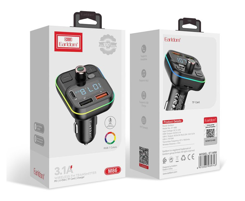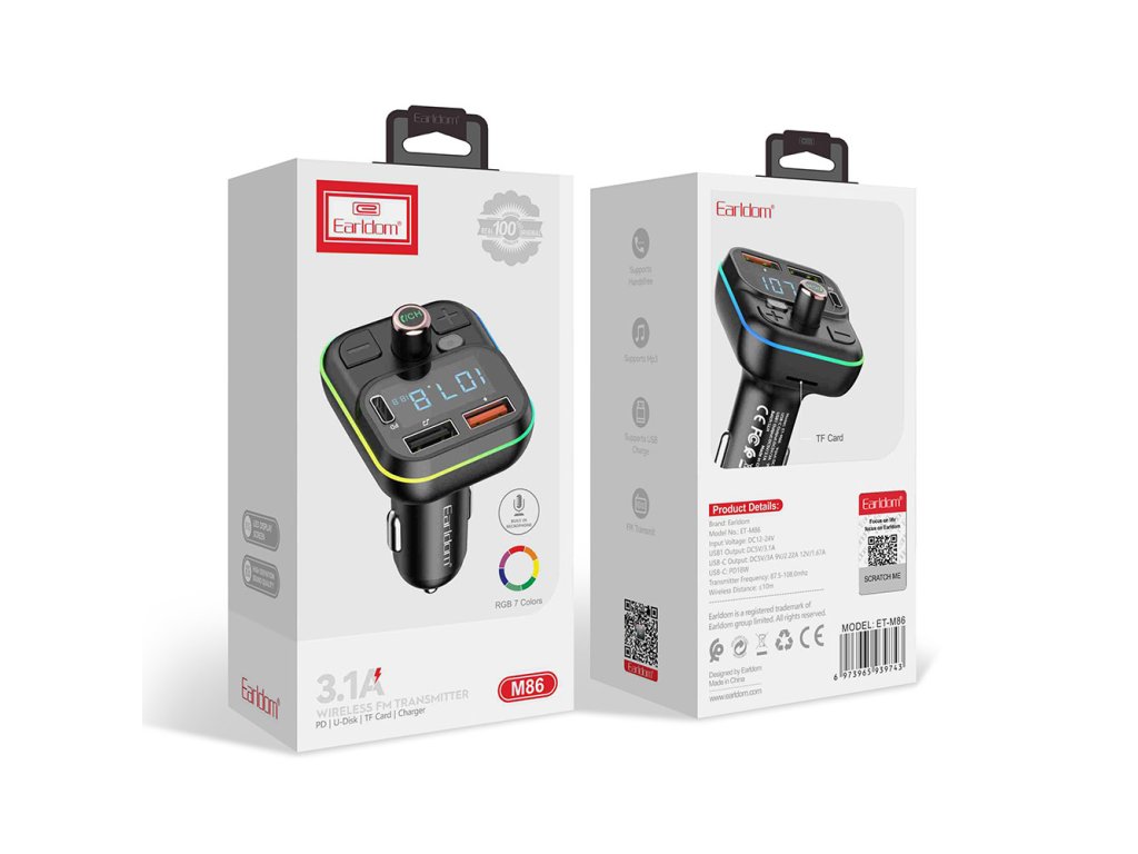 FM transmitter Earldom ET-M86, Bluetooth, USB, Type-C, PD, 3.1 A