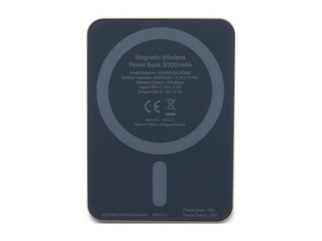 S powerbankem MagSafe Metal Script Logo můžete dobíjet mobilní zařízení s technologií Qi a MagSafe - díky dokonale sladěným magnetům se zařízení pevně drží na telefonu a okamžitě začne přenášet energii. Induktivní nabíjení je dokonalým řešením pro ty, kteří chtějí praktická a funkční řešení - díky němu už nepotřebujete další kabely k nabití telefonu. Intuitivní zobrazení stavu nabíjení