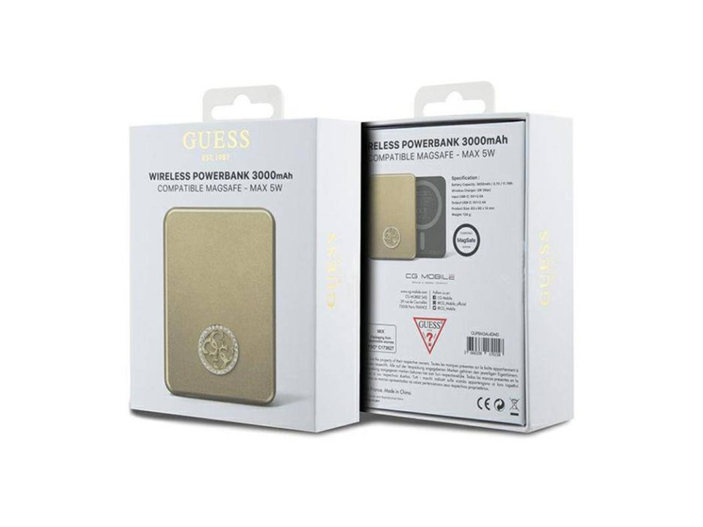 Při výrobě tohoto elegantního powerbanku byly použity pouze materiály nejvyšší kvality. Vrchní část zařízení je pokryta extrémně odolným hliníkem, který se pevně drží v ruce a zaručuje bezchybný vzhled po dlouhou dobu. Exkluzivitu tohoto produktu zdůrazňuje velké logo Guess v zlaté barvě, což také potvrzuje autentičnost a nejvyšší kvalitu produktu.