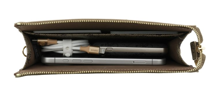 Taška je vyrobena z odolné PU kůže, která je příjemná na dotek a zároveň dobře chrání uložený obsah. Vnitřní část je vyztužena jemnou stélkou, díky které je telefon chráněn před povrchovým poškozením, poškrábáním i drobnými nárazy. Elegantní vzhled podtrhuje ikonické kovové 4G logo Guess na přední straně.