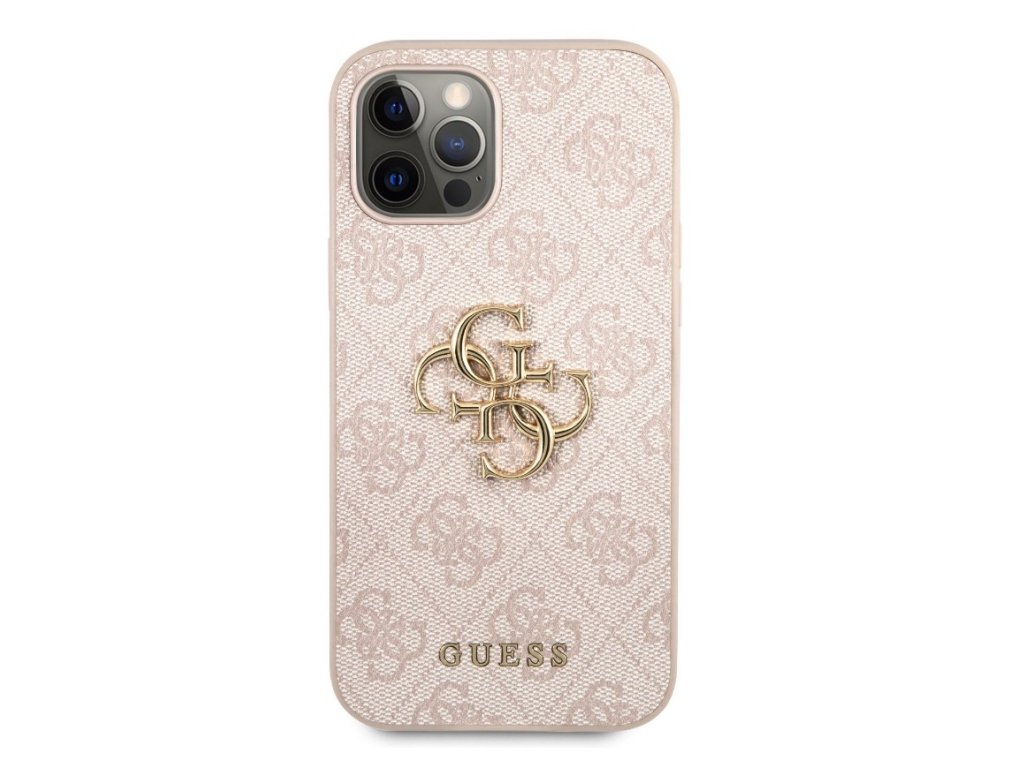 Guess PU 4G Metal Logo Zadní Kryt pro iPhone 12 Pro Max Pink