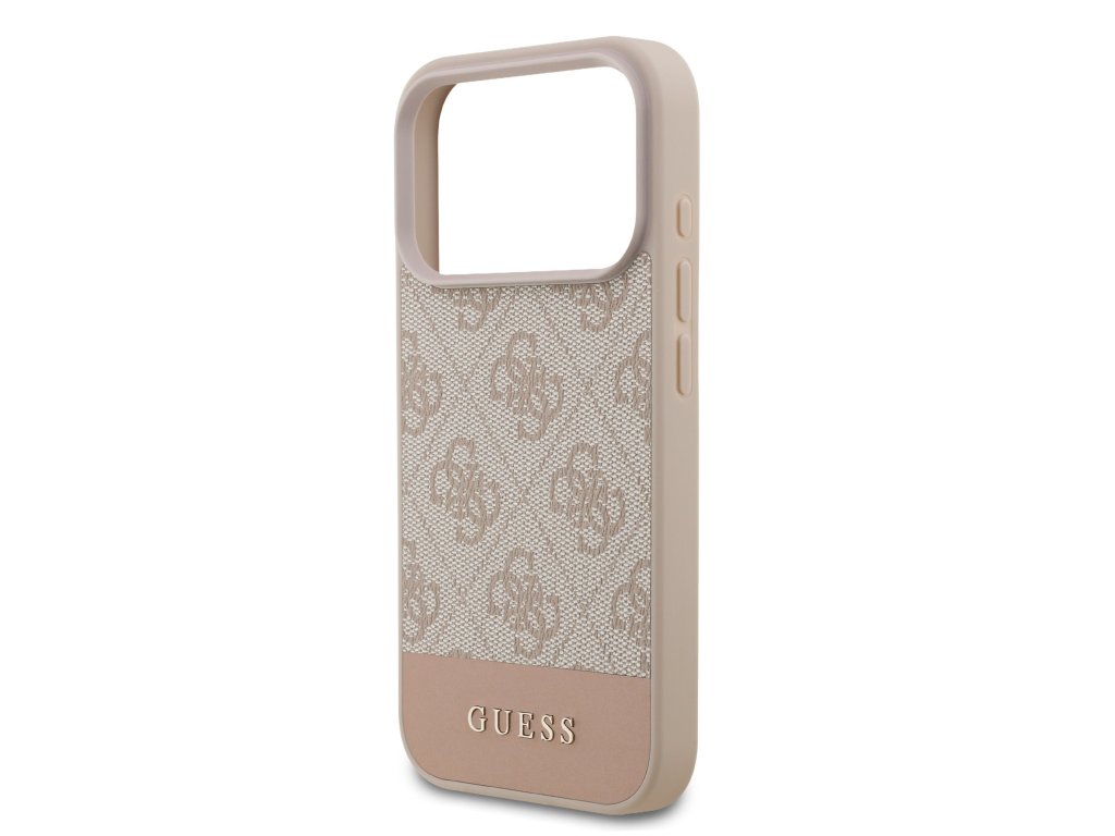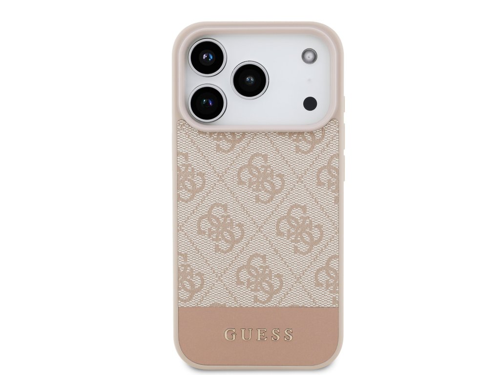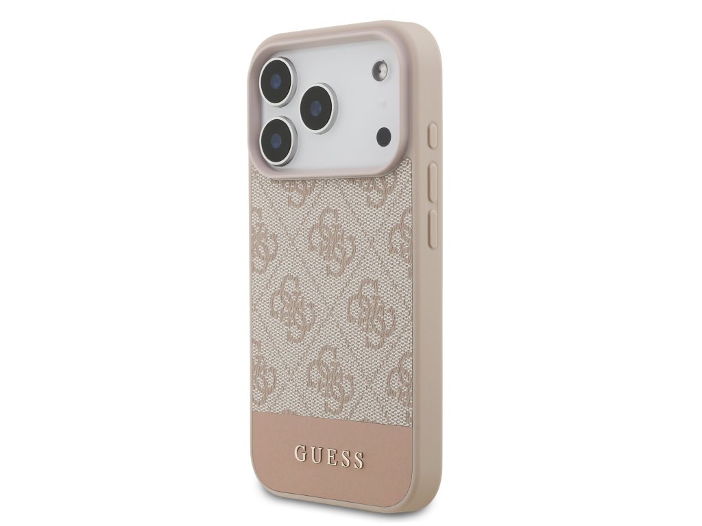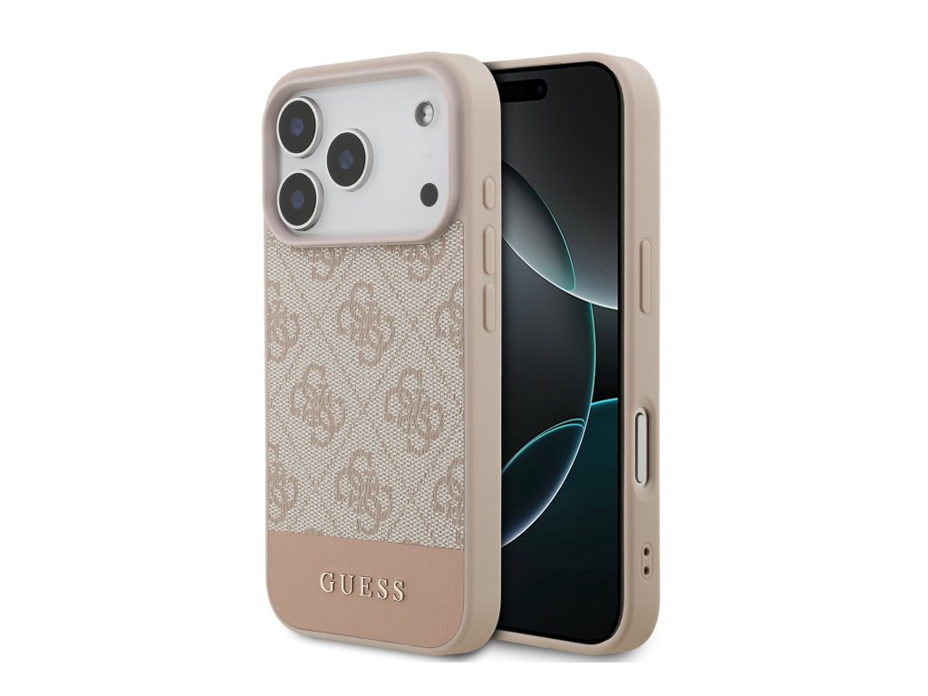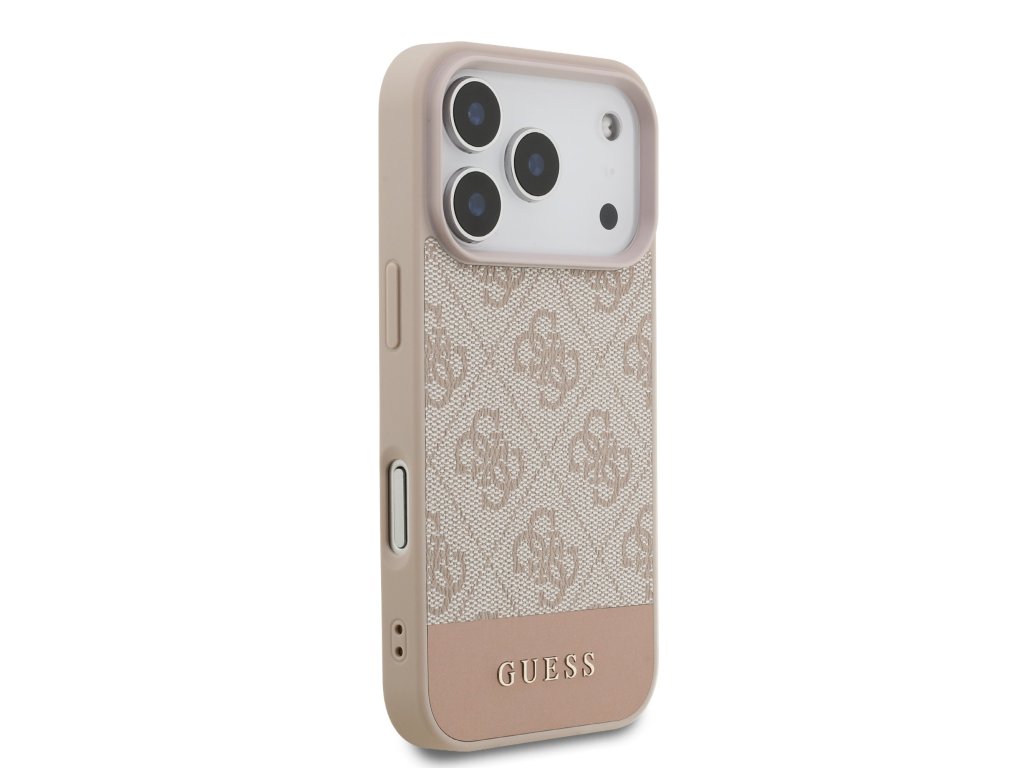 Guess PU 4G Stripe Zadní Kryt pro iPhone 17 Pro – růžová