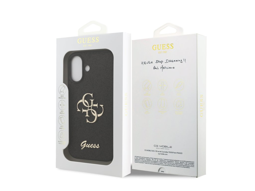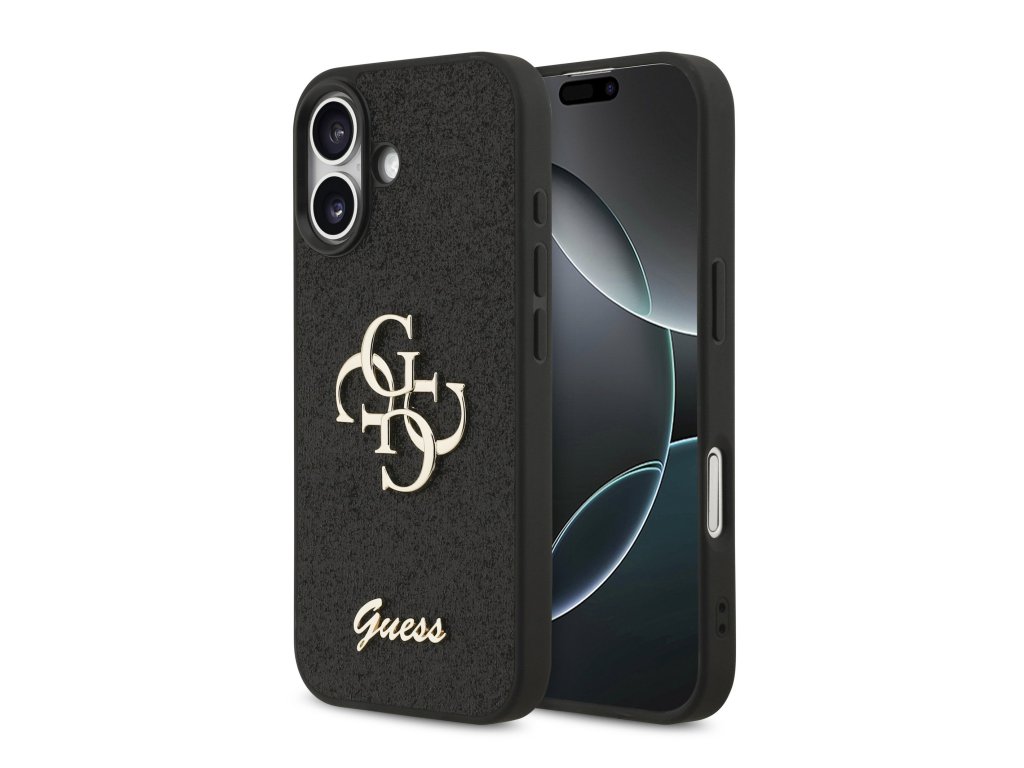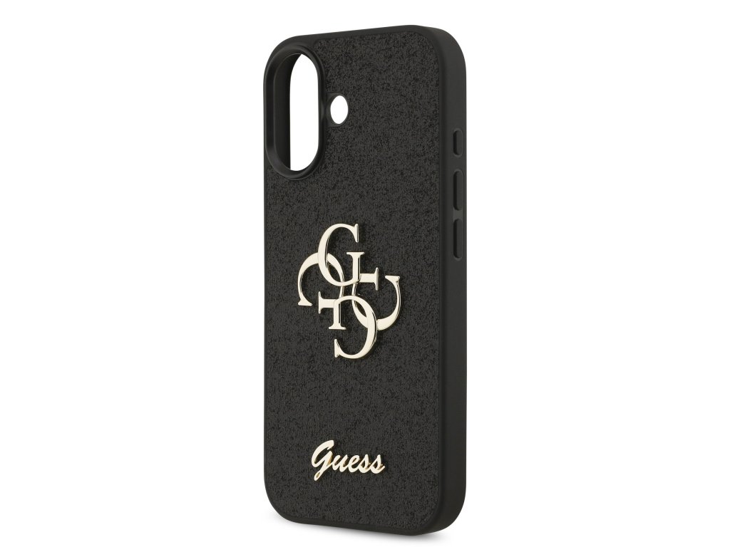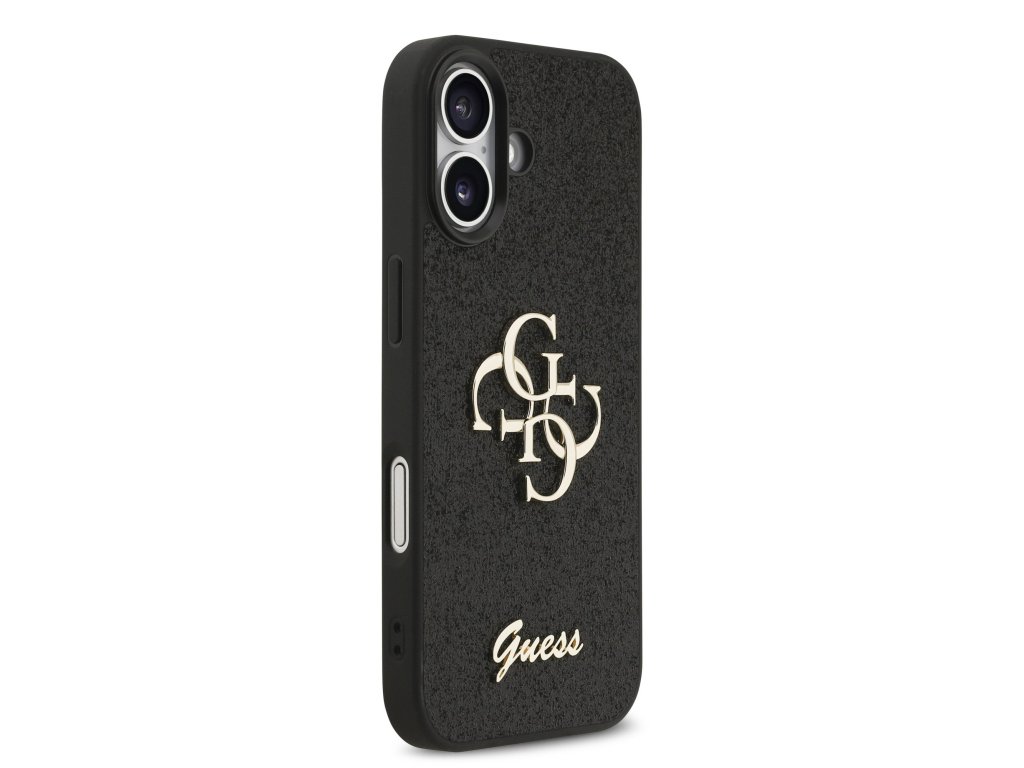 Guess PU Fixed Glitter 4G Metal Logo Zadní Kryt pro iPhone 17 – černá