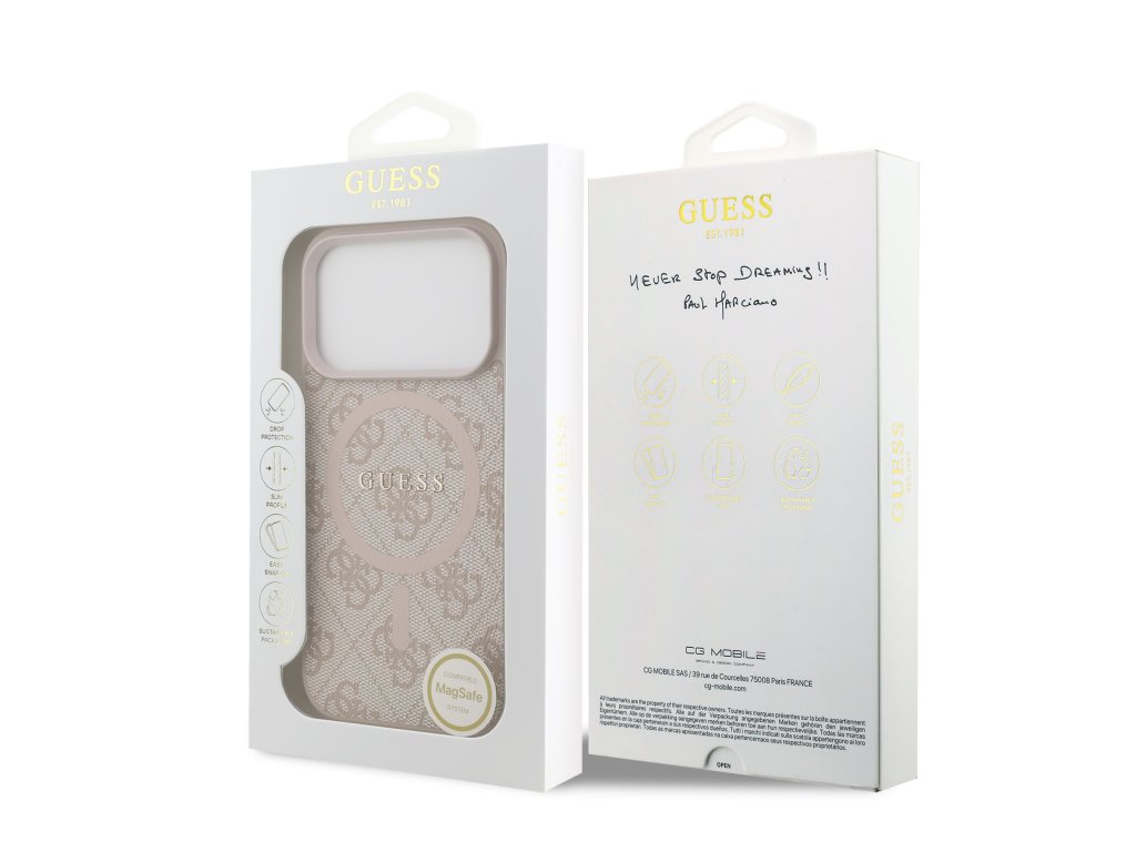 Elegantní 4G potisk v kombinaci s kovovým logem Guess a barevným MagSafe kroužkem vytváří design, který působí moderně, luxusně a zároveň stylově. Tento kryt není pouze ochranným prvkem, ale také módním doplňkem, který skvěle doplní váš telefon i celý outfit.