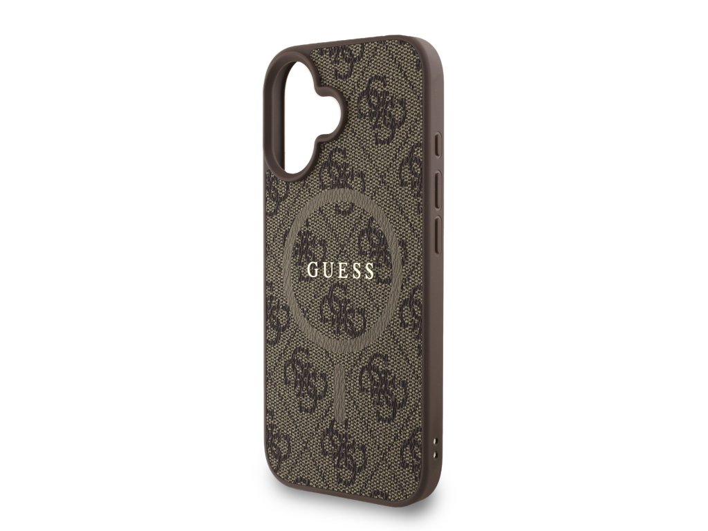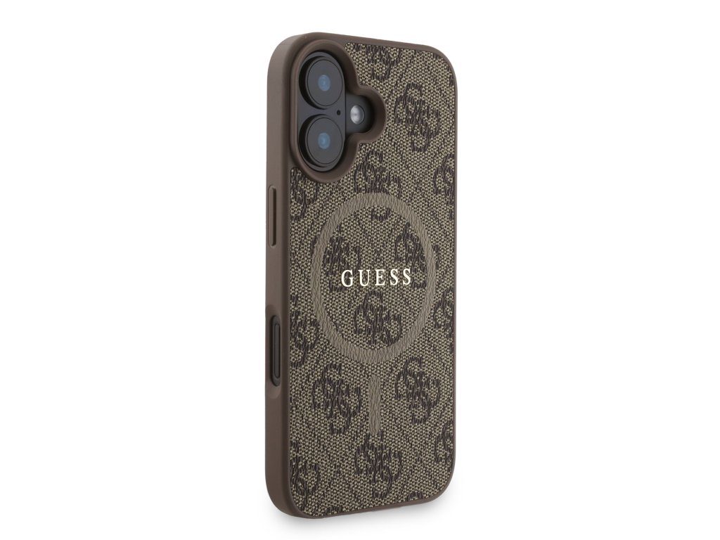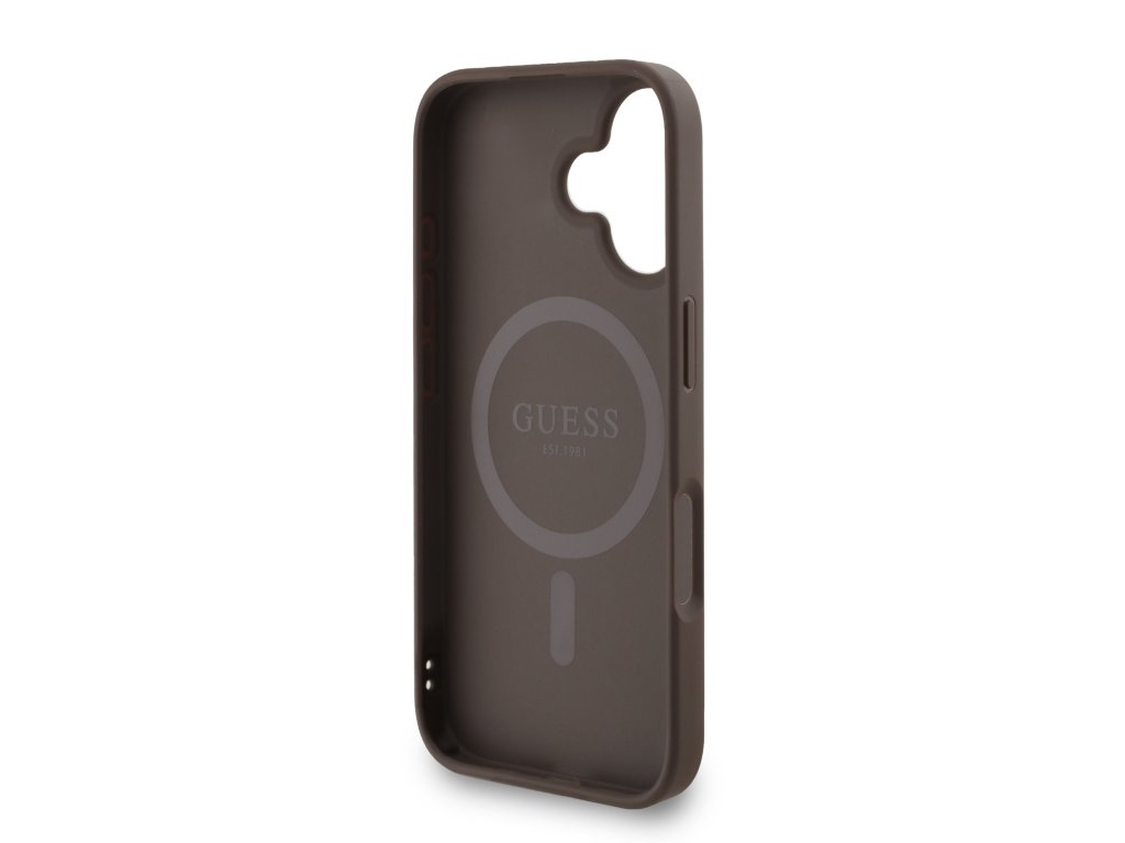 Guess PU Leather 4G Colored Ring Strap MagSafe Zadní Kryt pro iPhone 16 – hnědá