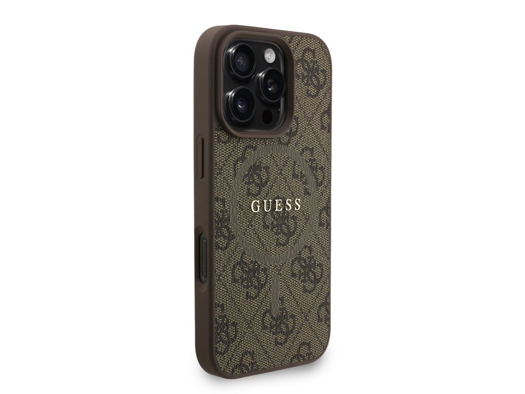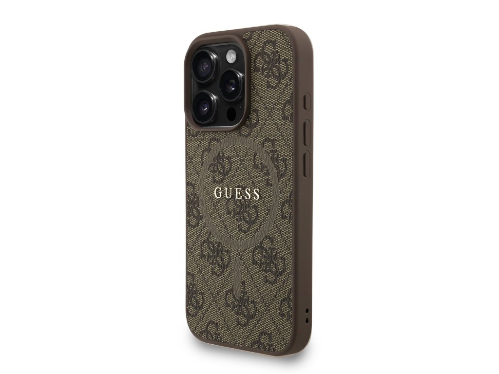 Guess PU Leather 4G Colored Ring Strap MagSafe Zadní Kryt pro iPhone 16 Pro – hnědá