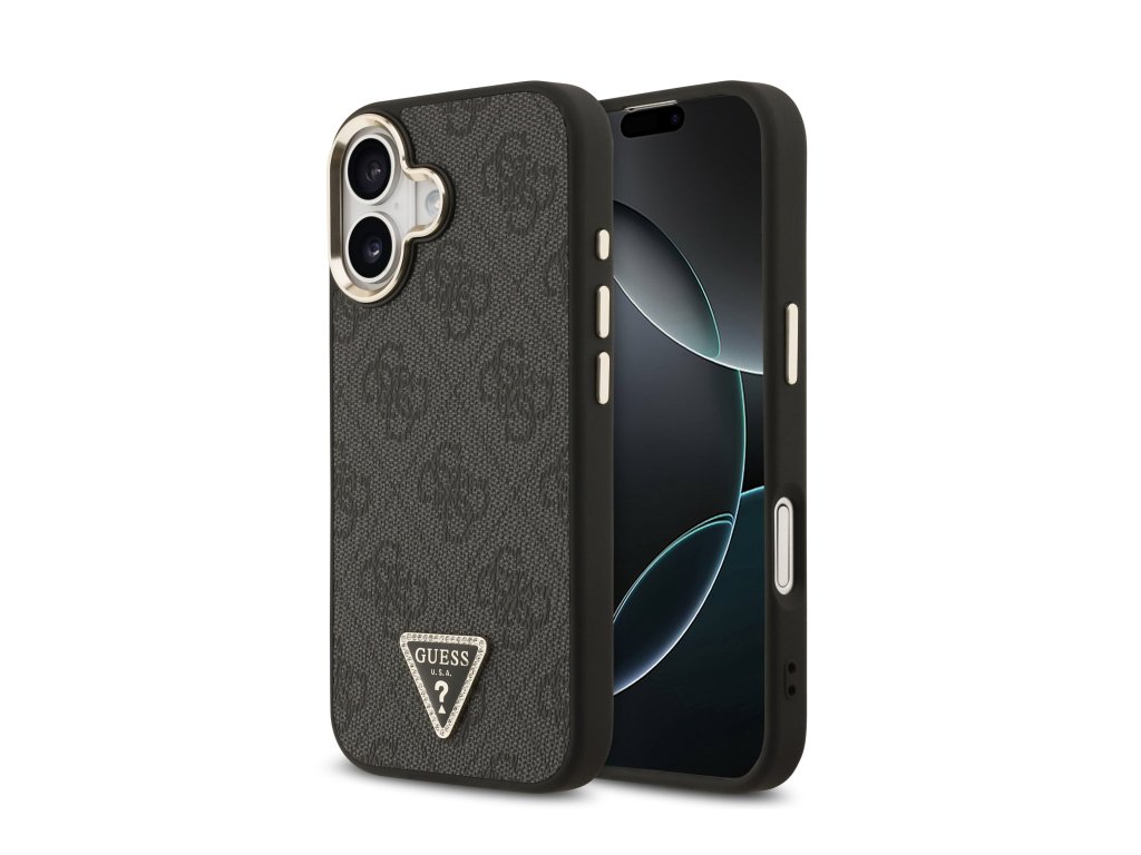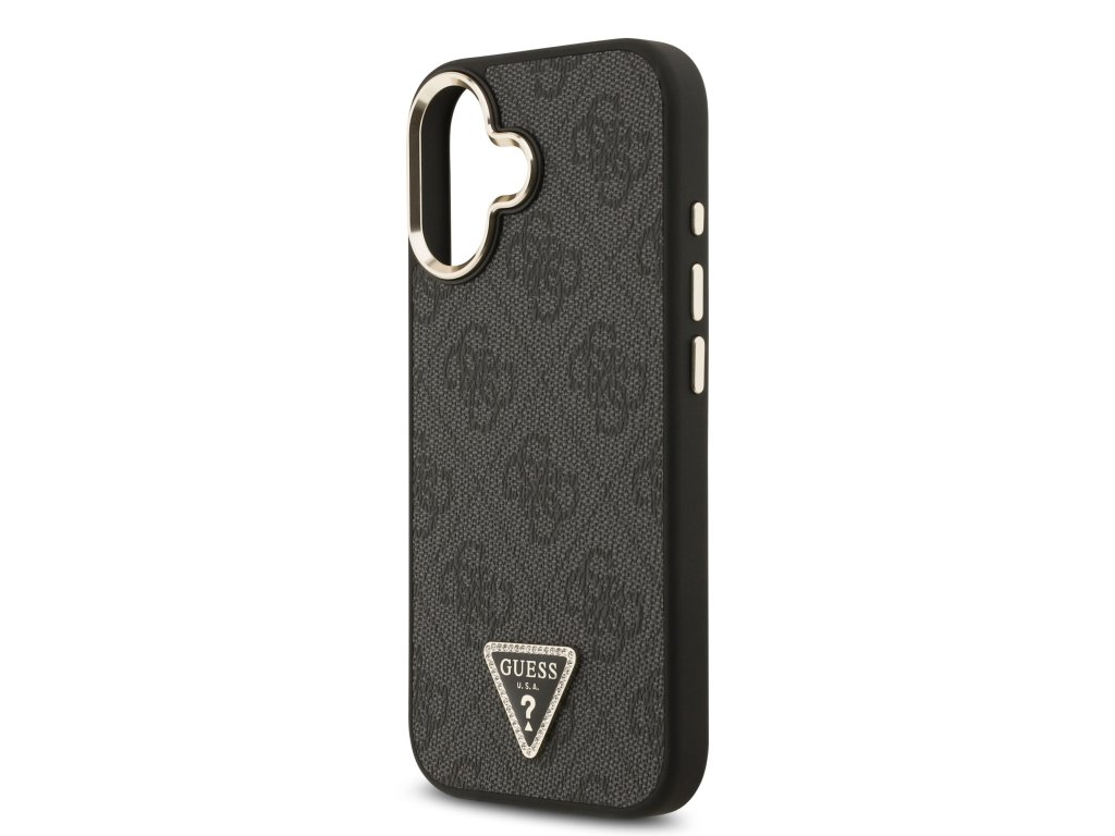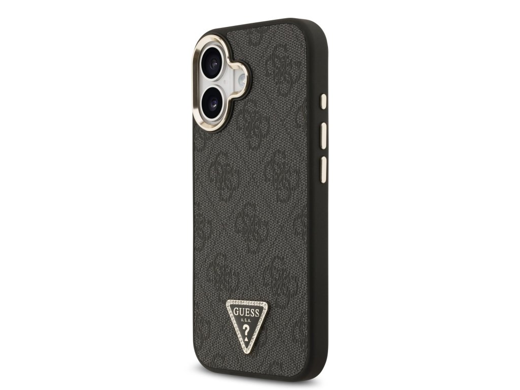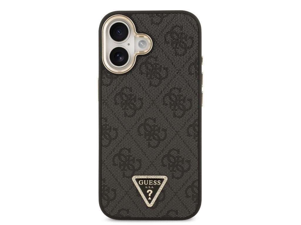 Guess PU Leather 4G Strass Triangle Logo Gold Frame MagSafe Zadní Kryt pro iPhone 17 – černá
