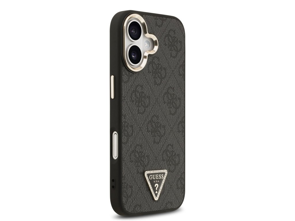 Guess PU Leather 4G Strass Triangle Logo Gold Frame MagSafe zadní kryt pro iPhone 17