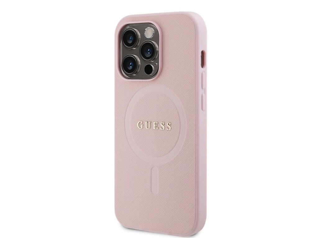 Guess PU Saffiano MagSafe Zadní Kryt pro iPhone 15 Pro Růžový