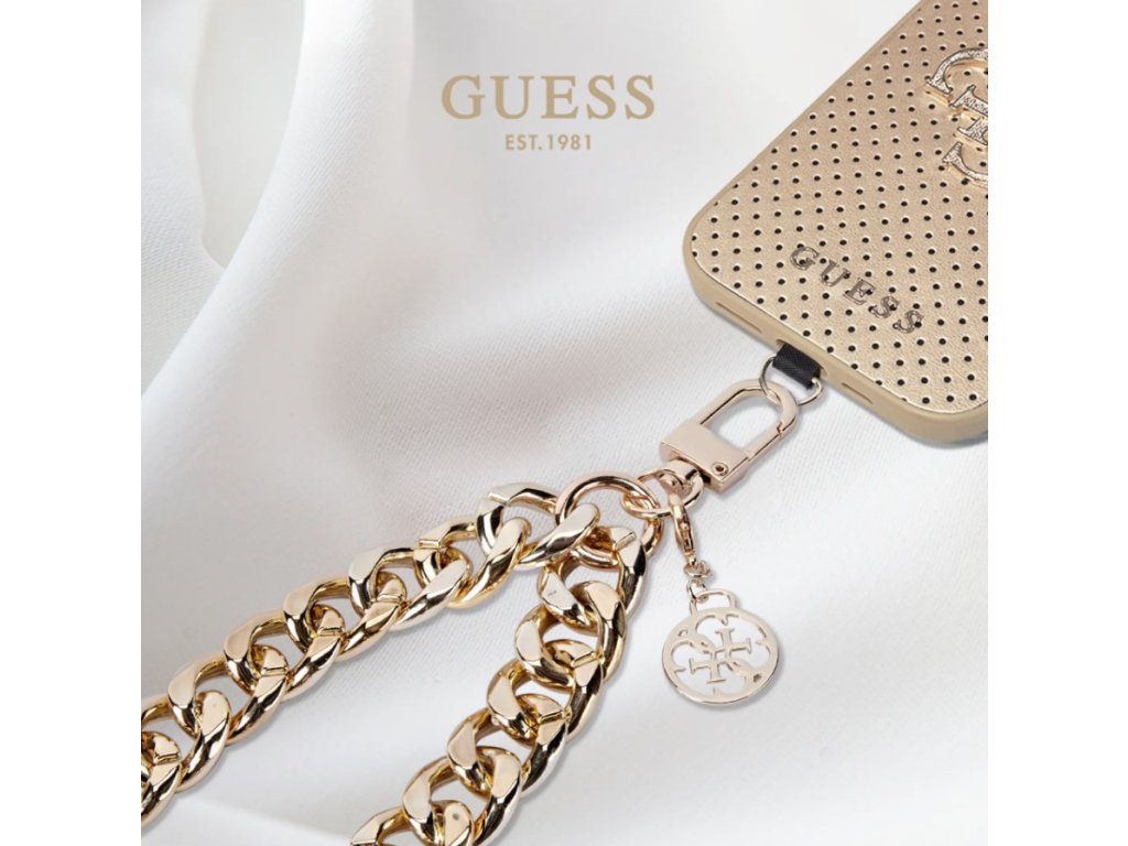 Světle zlatý doplněk je vyroben z lesklého a odolného kovu. Díky rafinované estetice Guess bude váš smartphone vypadat luxusně.