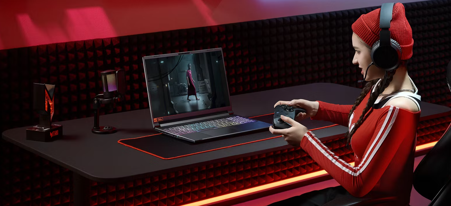 Větší zobrazovací plocha poskytuje dostatek prostoru pro hry, filmy a kreativní práci. Displej je navržen tak, aby poskytoval ostrý a přehledný obraz, který pomáhá udržet pozornost a zvyšuje komfort při delším používání. Nitro 5 tak vytváří prostředí, kde máte obsah stále v centru dění.
