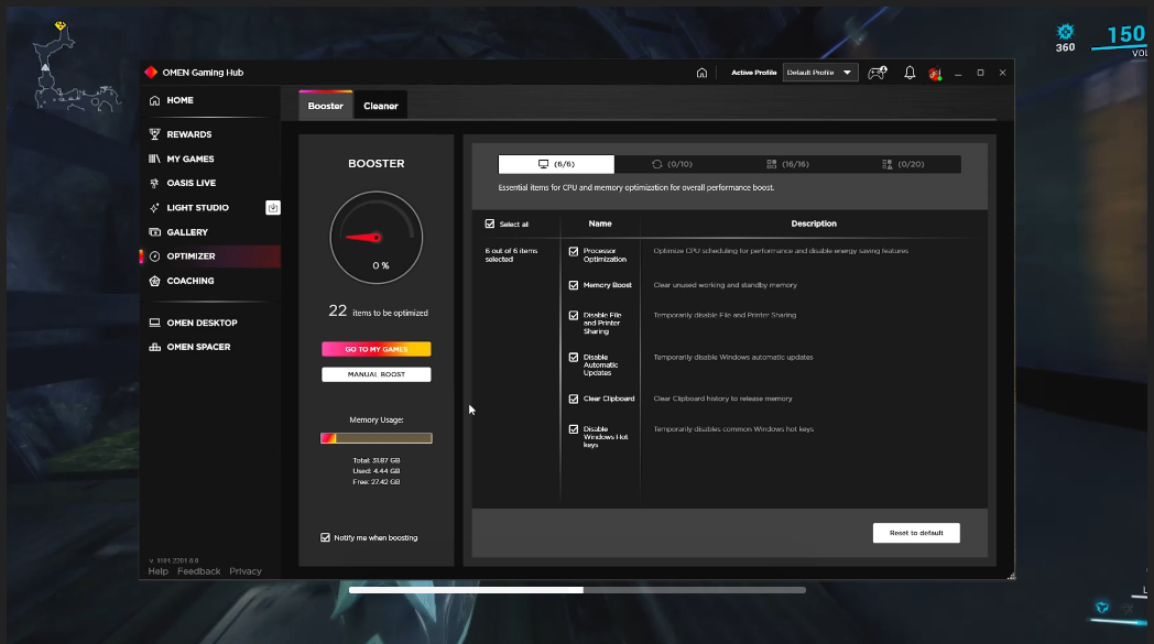 Plynulý herní výkon bez zbytečných procesů. Optimalizační nástroje automaticky upravují systémové prostředky, které nejsou během hraní potřeba, a uvolňují výkon tam, kde je nejvíce využit. Po ukončení hraní se systém vrací zpět do běžného režimu, což přináší stabilitu i funkčnost bez rušivých přechodů.