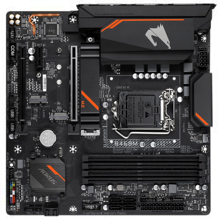 Počítač je postaven na základní desce Gigabyte B460M AORUS PRO, která zajišťuje stabilitu, kvalitní napájecí část a dostatek konektorů pro rozšíření. Konstrukce desky odpovídá hernímu nasazení a poskytuje spolehlivý základ pro dlouhodobý provoz.