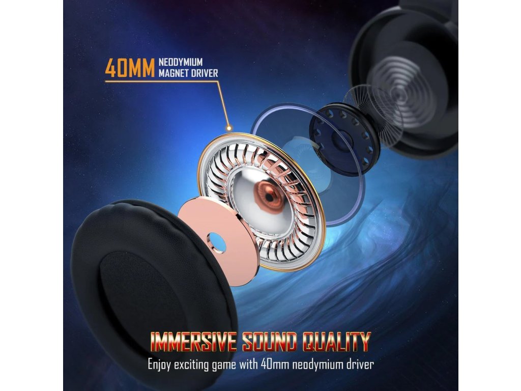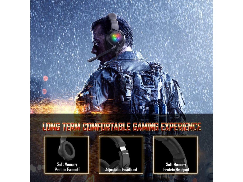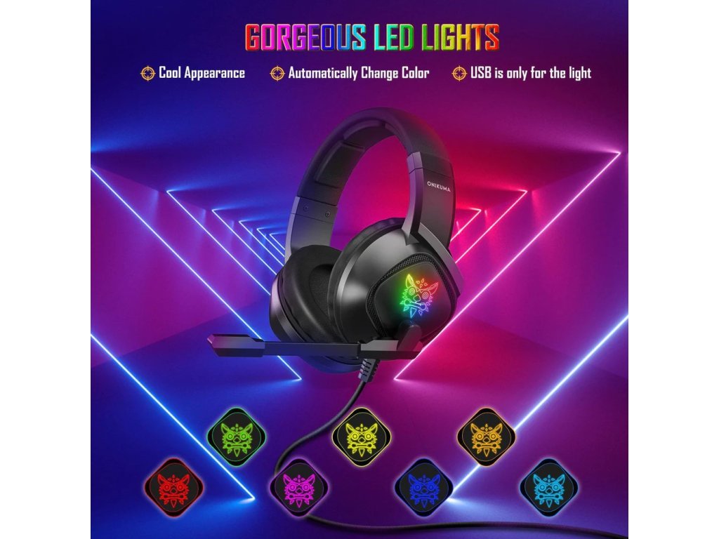 Onikuma K19 jsou sluchátka, která vám umožní vychutnat si zvuk té nejvyšší kvality, stejně jako bezproblémovou a čistou hlasovou komunikaci. Jsou vybaveny 40mm stereo měniči, což skvěle hodí na virtuální bojiště a dokonale vystihuje vše, co děje kolem vašeho hrdiny. Vestavěný mikrofon disponuje funkcemi potlačení šumu, takže máte jistotu, že váš hlas je jasný a nerušený okolními zvuky. Onikuma K19 také vyznačuje neuvěřitelným pohodlím a to vše díky čelence, která dokonale přizpůsobí tvaru hlavy, měkce polstrovaným a ergonomickým náušníkům skvěle sedí v uších. Sluchátka disponují RGB podsvícením, které jedinečným způsobem podtrhuje jejich moderní vzhled. Vestavěný dálkový ovladač umožňuje rychlé nastavení hlasitosti a také vypnutí mikrofonu. Součástí balení je také adaptér 2x Mini Jack na 1x Mini Jack.
