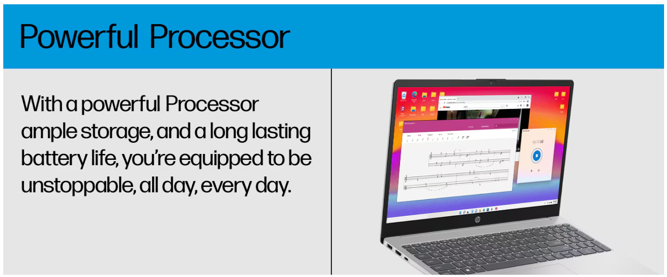 HP 15 řada je schopna zvládnout běžné úlohy jako psaní, práce s dokumenty, prohlížení internetu nebo videohovory. Je ideální pro kancelářskou práci či školní úkoly a poskytuje dostatek výkonu pro všechno.