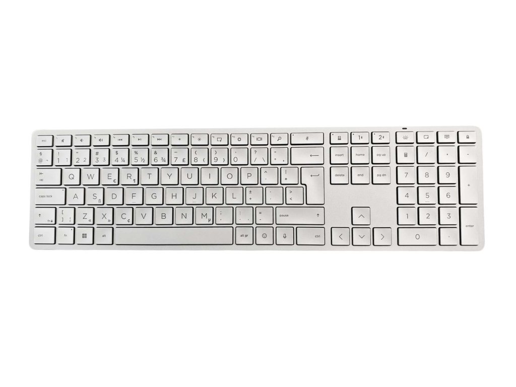 HP 970 Programovatelná bezdrátová klávesnice představuje prémiové řešení pro uživatele, kteří chtějí maximální komfort, flexibilitu a personalizaci při každodenní práci. Kombinuje elegantní stříbrný design, plnohodnotné rozložení kláves s numerickým blokem a moderní technologie, které posouvají zážitek z psaní na vyšší úroveň.