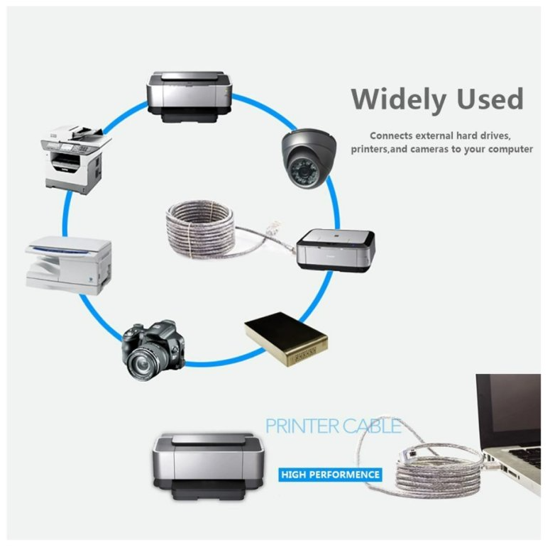 Tento kabel je typickým a osvědčeným řešením pro připojení tiskáren a multifunkčních zařízení k počítači nebo notebooku. Díky standardnímu rozhraní USB-A na USB-B je kompatibilní s velkým množstvím zařízení napříč značkami i generacemi.
