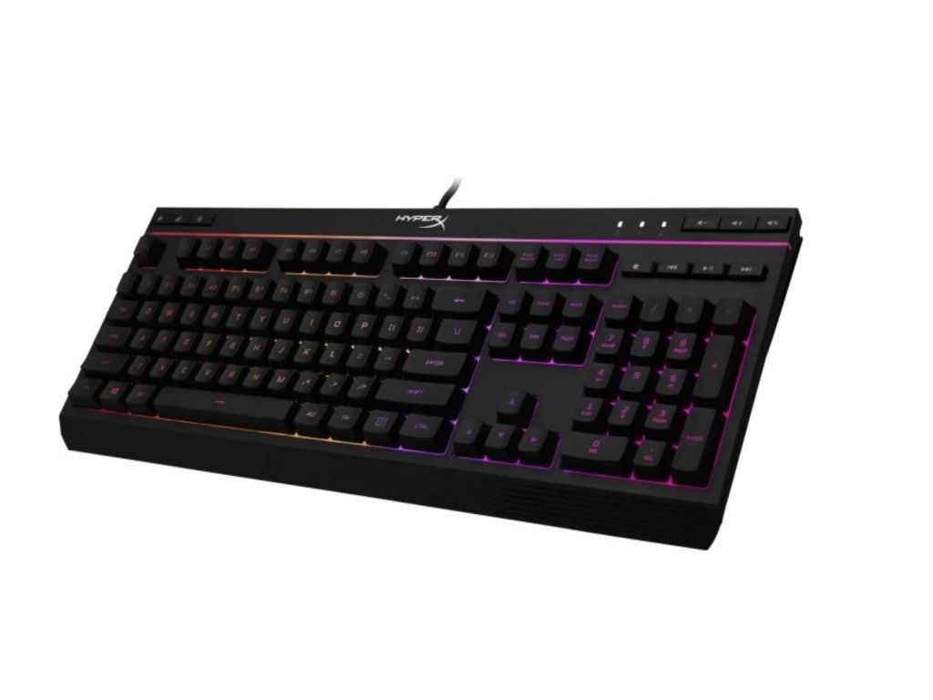 RGB herní klávesnice HyperX, která nabízí stylové podsvícení, tiché klávesy a spolehlivou odezvu pro každodenní hraní.