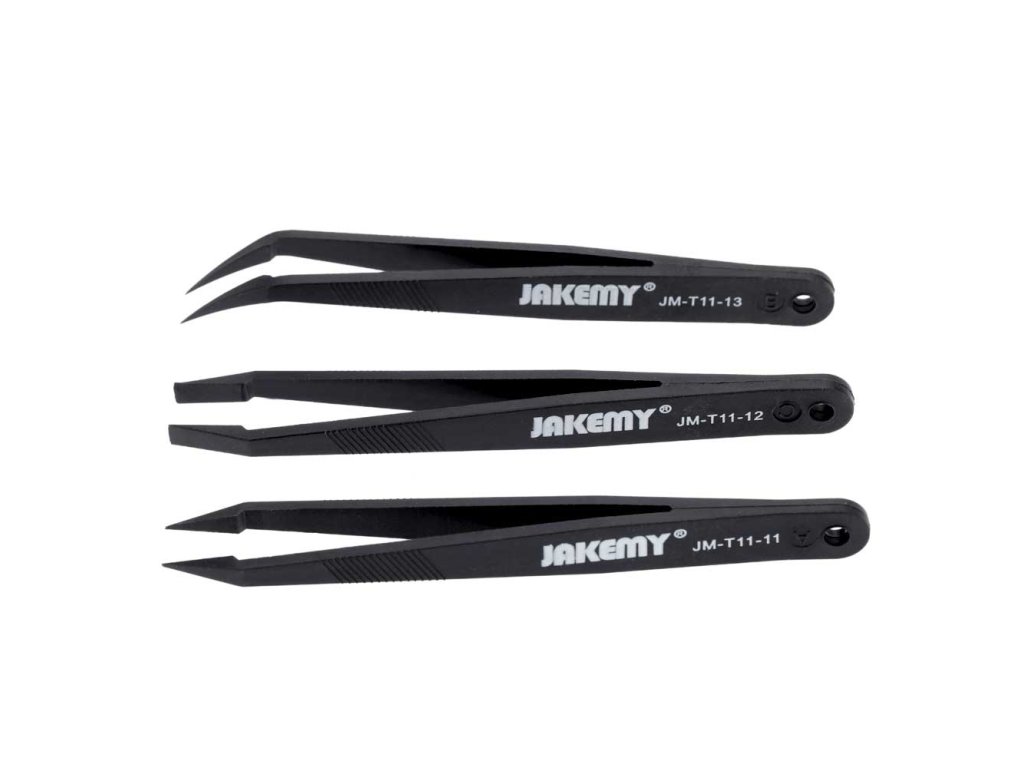 Jakemy JM-T11 profesionální sada antistatických pinzet pro techniky. Vyrobeno z nylonových a uhlíkových vláken.